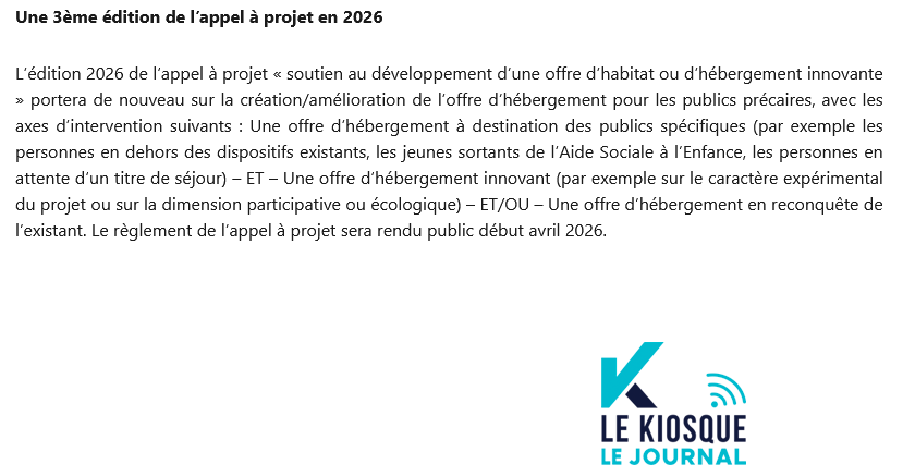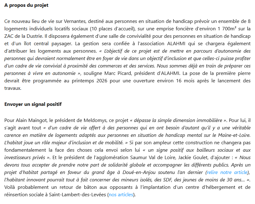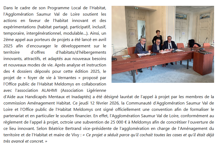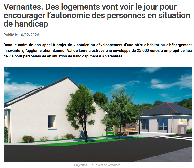 Articles du Courrier de l’Ouest et du Kiosque Le Journal de Vernantes du 16 février 2026 – L’Appel à projet de logements inclusifs sur la Dustrie est lancé